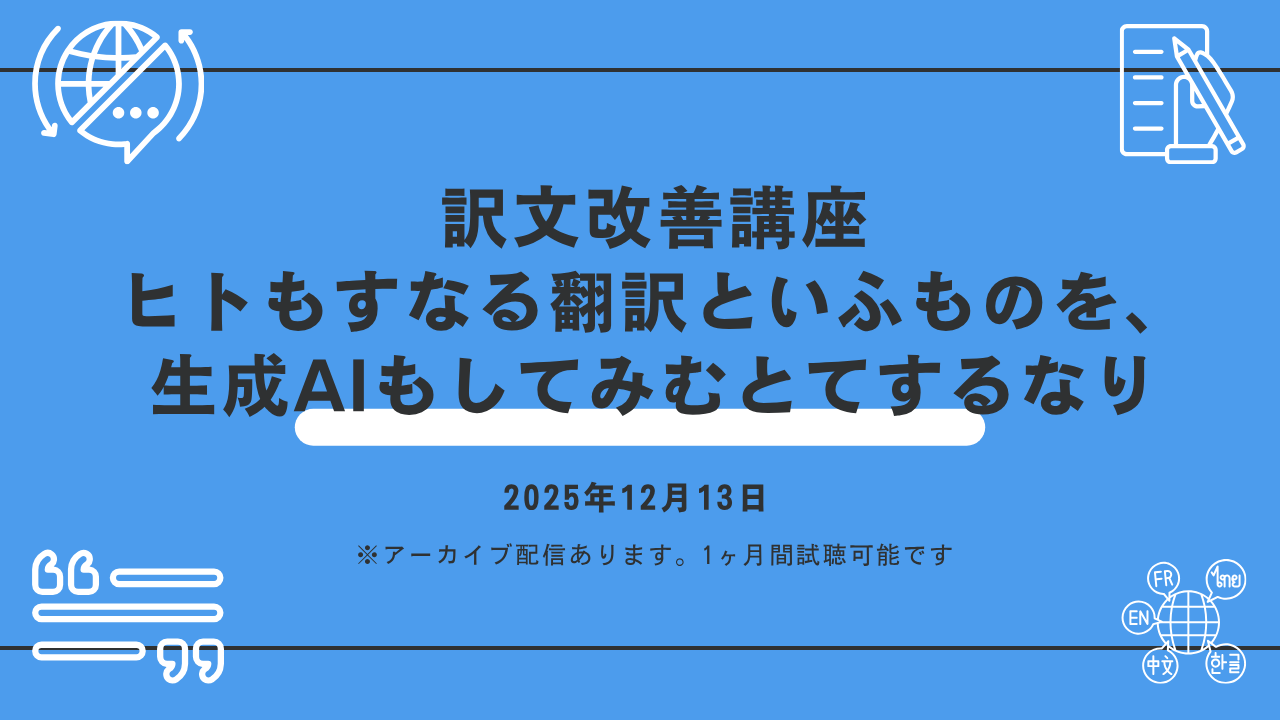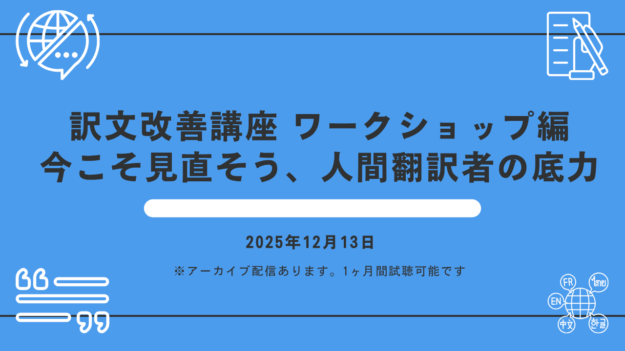 今回で第4弾となる「訳文改善講座」。ますますAI翻訳は現場で使われるようになってきています。